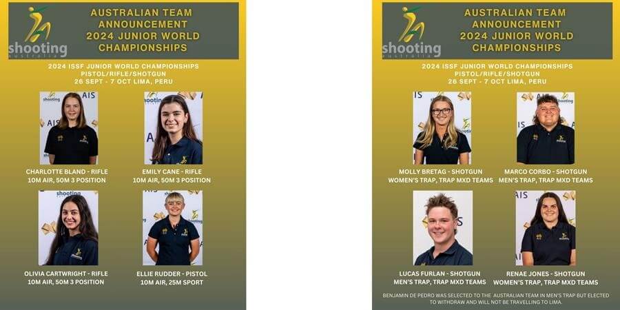 Shooting Australia has today announced an 8-athlete strong team to represent Australia at the September ISSF Junior World Championships to be held in Lima, Peru.