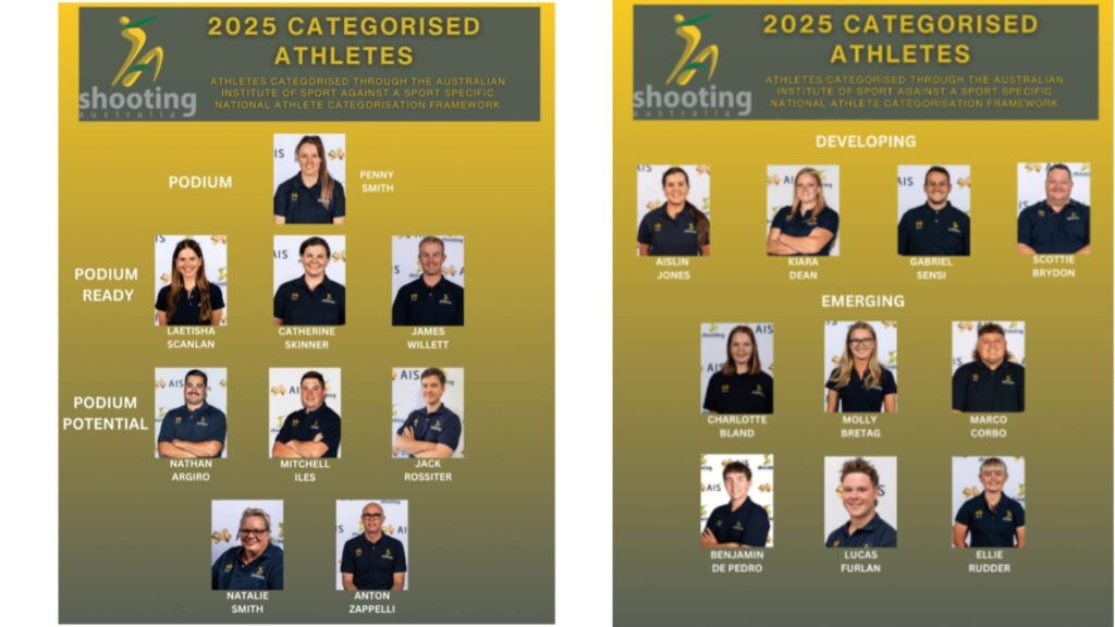 In March Shooting Australia announced the 19 athletes that have been categorised by the Australian Institute of Sport (AIS) for 2025. Categorised athletes are those that have been identified as having the greatest potential to contribute to Australia’s success at both the Olympic and Paralympic Games in LA 2028 and beyond.