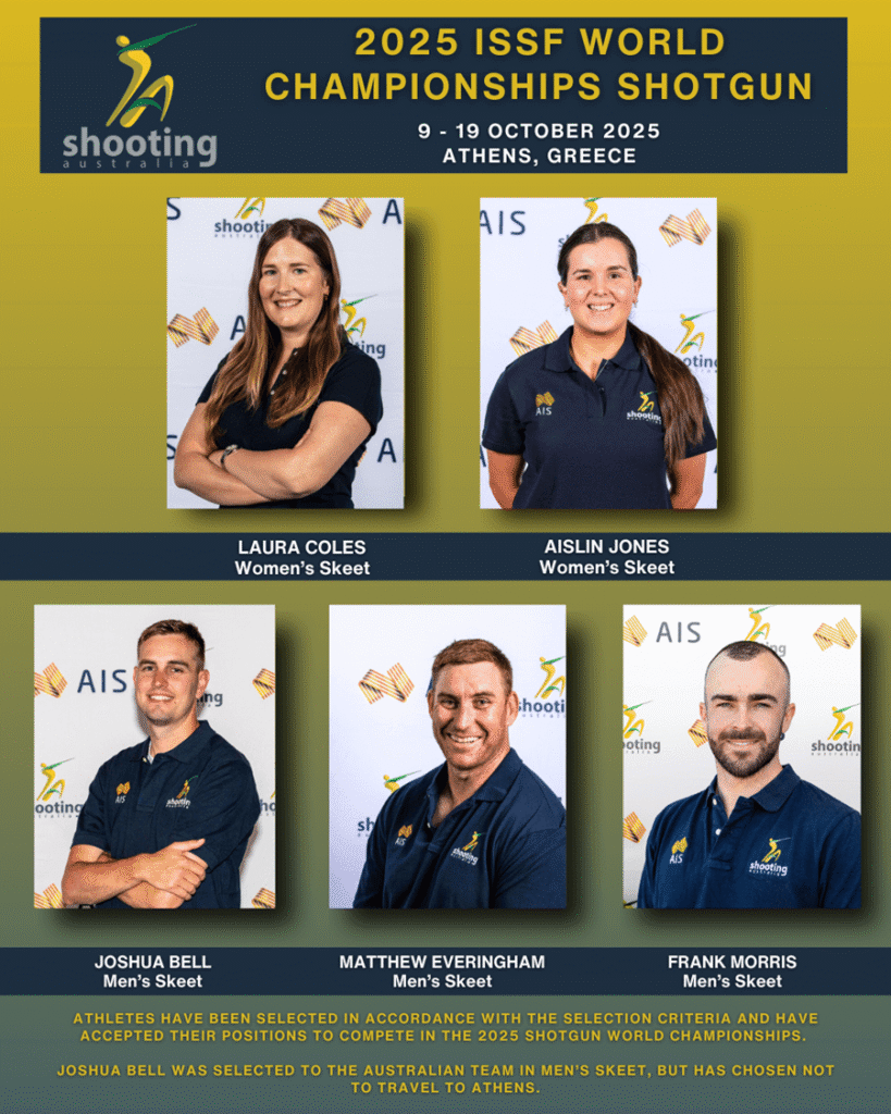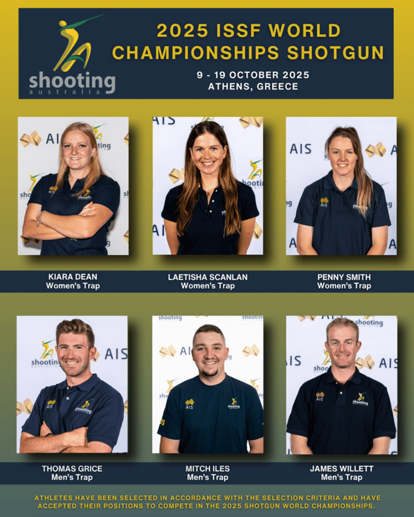 11 Australian athletes have been selected in accordance with the selection criteria to compete in the ISSF Shotgun World Championships in Athens, Greece, between the 9th and 19th of October 2025.