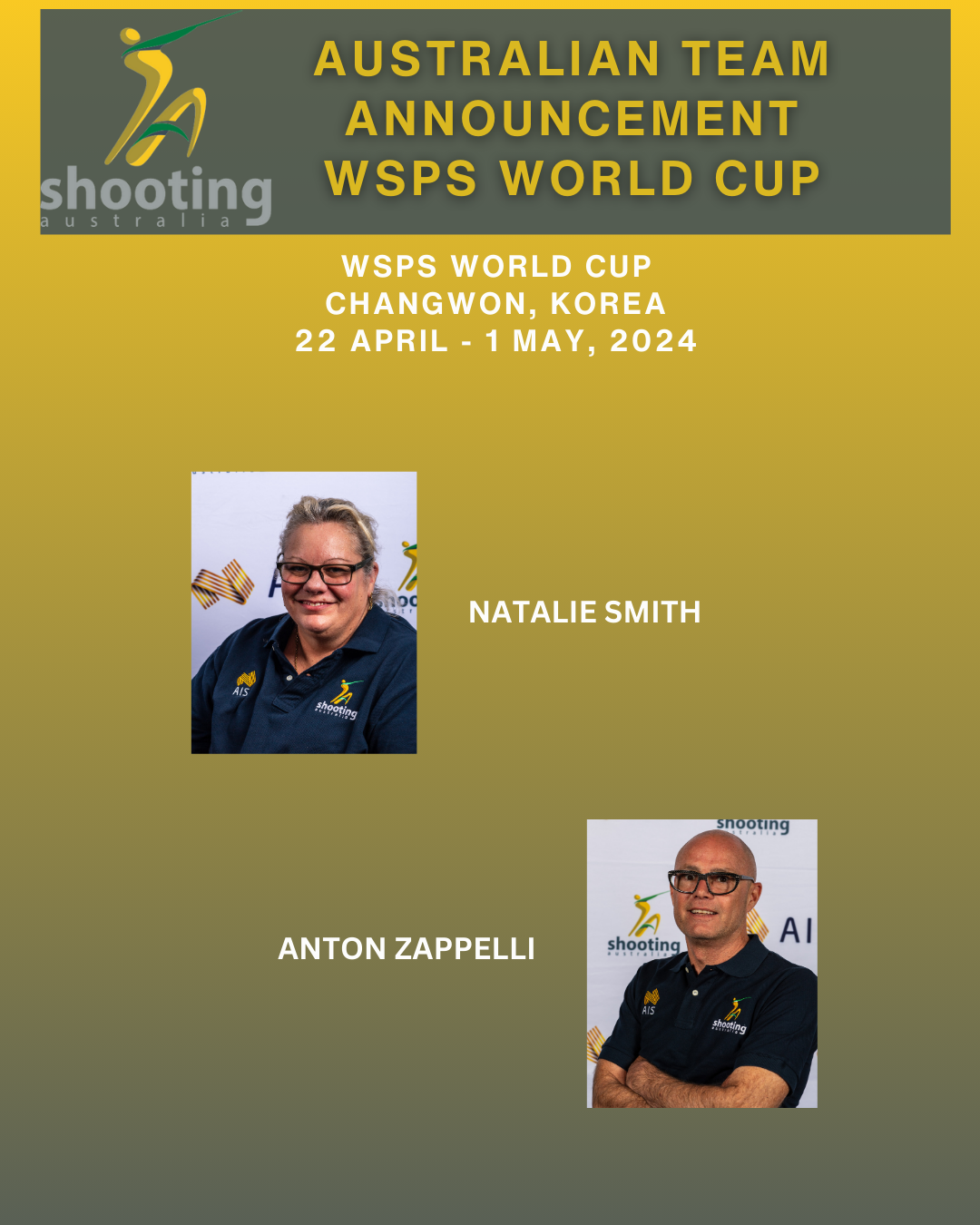 Congratulations to these Athletes who are selected and have accepted their position on the National Team to compete in the WSPS World Cup, Changwon, in April.