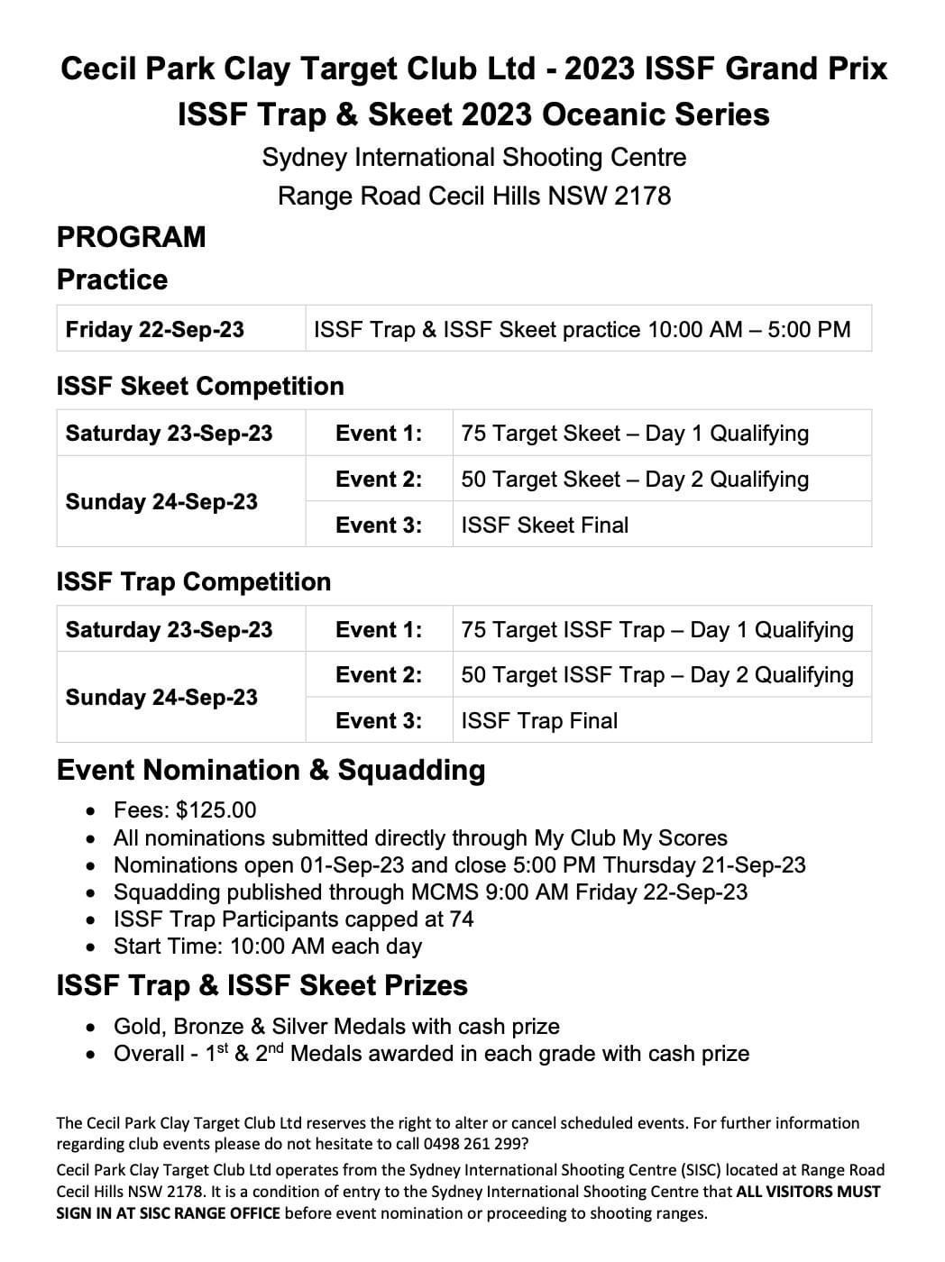 The Cecil Park Grand Prix will be the final selection event for the Oceania Shooting Federation Championships.