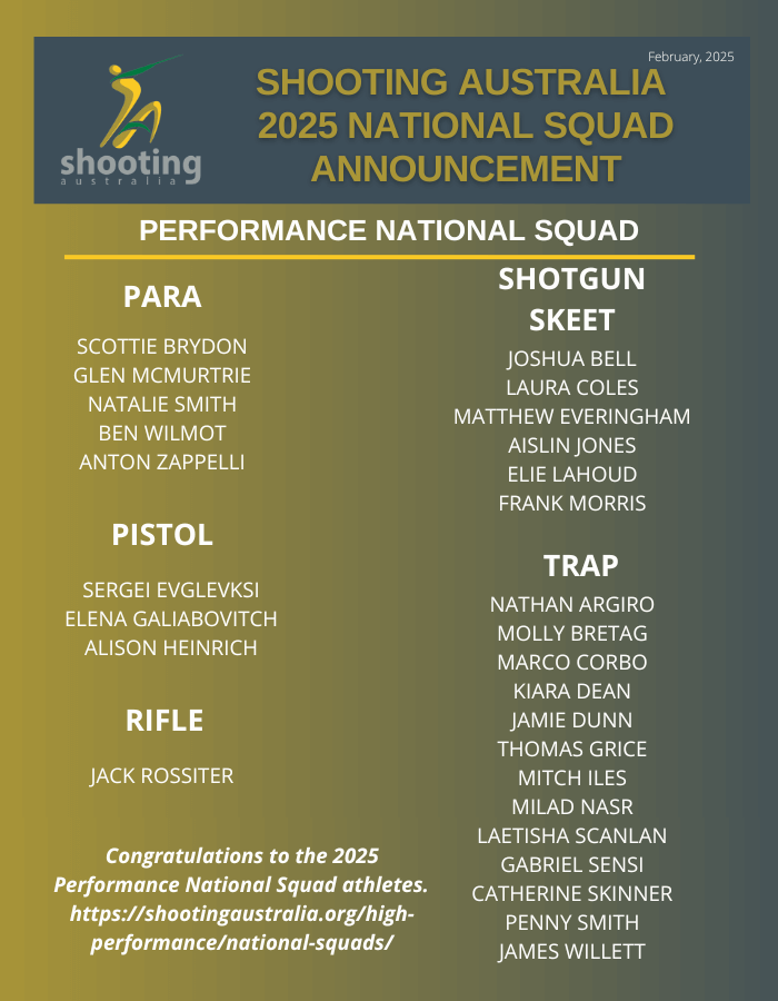 SHOOTING AUSTRALIA 2025 NATIONAL SQUAD